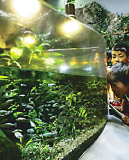 動物園の一角にある「世界のメダカ館」は、世界のメダカを集めた珍しい水族館で、平成5年に開館。