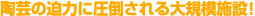 ここは平成14年にオープンした日本初の陶磁器産業と文化の複合施設。周辺は緑の森がひろがる丘陵地。そのなだらかな曲線に溶け込むような建物自体、すでに壮大なオブジェのよう。世界的建築家・磯崎新氏のデザインだけに、まさに一見の価値ありですね。