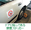目印は、屋根の上にある禁煙マークのあんどんと、ドアに貼ってあるステッカー。一般の車両と同じく流しで走っています。