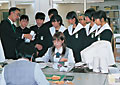 当日は会社説明を受けた後、配車センターとチケットセンターを見学。質疑応答では、若者らしい率直な意見が多数寄せられ、タクシー業務にご理解を深めていただきました。 |  |