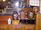 食事のお供に楽しみたいのが焼酎です。入手が困難な人気銘柄が勢ぞろい。「森伊蔵」「天使の誘惑」「しまむらさき」「富乃宝山」「越乃寒梅古酒乙焼酎」など、左党もうなる品揃えです。(ロック400〜1000円)。