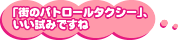 名鉄知多タクシーの「街のパトロールタクシー」はとてもいい試みですね。最近、どんどん悪質化していく犯罪で、狙われるのは弱い立場のお年寄りや子どもたち。街ぐるみで守っていかなければならないと思います。 |