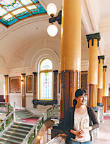 現在は名古屋の公文書館として、市政に関する資料を公開。司法に関する展示のほか、ステンドグラスなどの調度品も見応えがある。 |
