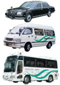 タクシーよりハイグレードなハイヤー、お客様が9人までご乗車できるジャンボタクシー、花嫁車、小型貸切バス、小型貨物車を保有しており、お客様の多様なニーズにお応えします。 |  |