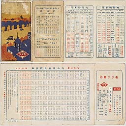 太平洋戦争の終結も間近い昭和19年(1944年)9月、同社が中核となって名古屋市内の5つのタクシー会社が、戦時企業統合という形で統合されました。これが現在の名鉄交通です。 さて、問題の史料です。名古屋タクシー自動車として営業していた大正6年から昭和19年までのものであることは間違いないのですが、正確な時期は今、調査中です。 それでも記載内容は昔のタクシーを彷彿とさせますので、いくつかご紹介しましょう。 メー夕ーの上にある「空車」の標示、当時は「あき車」と言っていたようです。また「運賃」は「賃金」。「賃金」は駐車場(営業所や車庫のこと)を出発したときからカウントされ、市外へ行く場合は、降車後の帰りの運賃もいただいていたようです。現在のハイヤーに近い営業形態だったわけですね。 記載には「安全迅速、親切丁寧」の売り文句があり、「営業上、不行き届きの点があったら遠慮なく本社へ電話をお願いしたい」とも書かれています。当時から「名タク」の基本姿勢はこれだったんだ事と、我々は大いに意を強くしました。 また営業案内には市内各所までの概算運賃一覧表や汽車、電車の時刻表も書かれ、多方面で貴重な史料になることと思われます。 なお名タクでは、平成8年に社史「名タク半世紀の歩み」を刊行しています。研究などでご希望の方には無料でお送りしますので(ただし送料は着払い)、本社社長室までお申し込みください。部数に限りがありますので、ご希望に添えない場合はご容赦ください。また名古屋のタクシーに関する古い史料をお持ちの方は、ご一報くだされば幸いです。 |