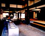 | 松阪商人の 暮らしぶりにビックリ! ところで蒲生氏郷の手柄といえば、繁栄策として自由な商売を奨励したこと。楽市・楽座ですね。伊勢、和歌山、熊野の三街道を整備し、宿場町・松阪を伊勢の大阪といわれる商都に育てたわけです。 その松阪商人の筆頭が三井高利。江戸に進出し越後屋呉服店を繁盛させ、明治以後の三井財閥の基礎を築いた大商人。城址から車で数分、目抜き通りを脇に折れると、その三井家発祥地です。14歳の高利少年が江戸へ出たとき、元手は10両分の松阪木綿。それを7万2千両にまで膨らませたそうです。 豪商はまだまだいて、筋向こうの松阪商人の館は、やはり江戸で成功した紙問屋、小津清左衛門の屋敷を硬化したもの。格子と矢来の質素な玄関からは想像できないくらい広いお屋敷。入り口にどかんと置かれた千両箱ならぬ万両箱は見ものでした。 |
