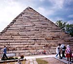 瑞浪からは国道19号線を北上、恵那市から広域農道を走って蛭川村へ。お目当ては「博石館」ですが、途中の恵那峡をはずすわけにはいきません。 70数年前、木曽川の治水のために造られたのが大井ダム。それまでの激しい流れが削り取った岸壁の険しさと、ダムでせき止められた静かな水面が好対照。その景観に新緑と初夏の日差しが加わって価千金、見飽きることがありません。 この恵那峡から蛭川村へも絶好のドライブコースで、わずか10分で目的地なのが残念なくらい。 さて博石館。この辺りは鉱物とみかげ石の一大産地。そこで地場の鉱物ほか世界中の鉱物が展示してあるわけですが、魅力はそれだけではありません。 巨大な石のアーチをくぐると、まず目に入るのがピラミッド。古代エジプト・クフ王のピラミッドを10分の1に再現したもので高さ14・6m。大理石の地下通路は360mの迷路で、一人ではちょっと勇気がいるほど本格的です。 広い展示室には一抱えもある黒水晶からトパーズ、オパール、ダイヤモンドの原石がずらり。女性にはこたえられない展示品ですが、男性向けならこっち、博石館ビールでしょうね。数万年を経て浸透した岩盤水を使用した本格ビールを、レストランでグイ。運転無用のジャンボドライブの醍醐味を味わえる瞬間です。博石館にはほかにも手作り結婚式場あり、ギャラリーありと見所いっぱい。第一、建物自体が石造りの壮大なオブジェで、何か別世界へ迷い込んだような、不思議な気分を味わえます。 |