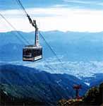 中央自動車道駒ヶ根インター料金所のすぐ先、県道駒ヶ根公園線を右折。カラマツ林を縫って5分も走れば、そこが菅の台バスセンター。中央アルプス駒ヶ岳ロープウェイの起点「しらび平」までは一般車両は通行禁止のため、専用バスに乗り換えます。貴重な大自然へと分け入るためのマナーと思えば納得ですね。 林道を30分、標高1661メートルの「しらび平」駅へ。下界の残暑がウソのようなさわやかさ。ロープウェイはここから950メートルという日本最高の高低差を7分ちょっとで上り切ります。終点の「千畳敷」駅は2611メートル。まさにアルプスの内ぶところ。見上げると、宝剣岳の岩壁が圧倒するように目前に迫り、山岳気分は満点です。 千畳敷は2万年前の氷河の遺跡だとか。上部の岩肌が氷で削られ、氷河によって運ばれて、巨大なお椀のようなくぼみ(カール)になったもの。観光客にとっては終点ですが、登山者はここが出発点。カラフルなザックを背に、長い列が宝剣岳や木曾駒ヶ岳を目指してゆっくりと進んでいきます。 この千畳敷の周辺は高山植物の特別保護区。秋ともなるとナナカマド、ウラシマツツジなどが真っ赤に染まり、息を飲むほどの絶景を見せてくれます。見ごろは9月25日過ぎ。この別世界が気軽に味わえるのですから、ロープウェイさまさまですね。 |