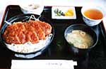 さて、お待ちかねの食事は名物のソースかつ丼を。駒ヶ根には50軒以上もかつ丼の店があるそうですが、今回は美術館にほど近い駒ヶ根高原家族旅行村の「レストランあるぷす」を選びました。 各種の調味料を調合した秘伝のソースに、揚げたてのロースカツをじっくり浸す。で、アツアツのご飯の上にキャベツを敷き、そのカツを載せれば出来あがり。卵でとじないのが駒ヶ根風で、カツ本来のカリッとした歯ざわりと香ばしさが実においしい。 窓の外には緑が広がり、木陰にはケビンやオートキャンプのテント。味よし、景色よし、食事が進むのも当然でしょう。 この家族旅行村では日帰り温泉の「露天こぶしの湯」が10月2日にオープン予定。露天風呂からは南アルプスが一望でき、男女の造りが若干違うため、月に一回の割合で、男女の入れ替えがあります。また軽食・休憩コーナーでは、入浴後にのんびりとくつろげます。ますますジャンボドライブが楽しくなりそうですね。 |