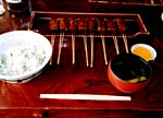 犬山といえば4月6,7日からの犬山祭も有名です。1635年から続く針綱神社の祭礼で、町内それぞれの趣向を凝らした車山(やま)がそろい踏み。からくり人形の演技に注目が集まります 神社そばの犬山市文化史料館では、弥生時代からの当地の歴史を紹介していますが、とくにロビーに展示する車山が見もの。そのけんらんさは祭りの迫力をうかがうに十分でしょう。さらにからくり人形見物なら、お向かいの別館「からくり展示館」へ。木偶師(でくし)7代玉屋庄兵衛作の茶運び人形など多彩なからくりの展示や、9代玉屋庄兵衛のからくり細工の実演公開も楽しめます。 さてお待ちかねの昼食は史料館から車で数分、犬山高校横の松野屋へ。菜めし田楽の専門店で、遠方からもおなじみが訪れるしにせです。まずは「いも田楽」でビールを一杯。味噌と山椒の風味が食欲をそそりますね。人気の田楽定食は豆腐田楽。それに菜めし、湯葉の吸い物という取り合わせ。豆腐の香ばしさと爽やかな菜めしが絶妙、さすが人気店の味でした。 |