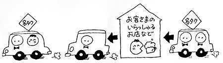 お客さまのお車を代わって運転し、お客さまはタクシーでお送りする代行運転。わが社をはじめ名鉄タクシーグループ3社では7月22日から、この新しいサービスを開始しました。6月1日から道路交通法が改正されたこともあり、マスコミなどで注目を集めています。 代行運転のシステムはいたって簡単。タクシー配車と同じように飲食店などから電話やファックスでご注文をいただくと、タクシーに乗務員2人が乗ってお迎えに伺います。そこでお客さまはタクシーに、お客さまのお車はもう一人の乗務員が運転して、目的地までお送りするわけです。 料金は、通常のタクシー料金プラス4400円(消費税、保険料を含む)。例えば3人でご利用いただけば、代行運転料金は、お一人わずか1500円の計算です。タクシーチケットでのお支払いももちろんOK。 ただしご注意ください。ご利用できるのは、お迎え先が名古屋交通圏内の場合に限り、大型車やマイクロバス、外車、2輪車は対象外とさせていただきます。また人数は3名まで。お迎えにあがるまでには30分前後かかりますので、「待つ間にもう一杯いこか」と、余裕を持ってのご注文を。 飲酒運転の罰則がぐんと重くなった改正道路交通法。