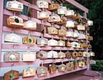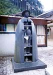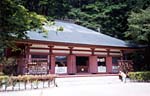 長篠から県道32号線を走り鳳来寺山へ。まずは鳳来寺参道の入り口近くにある鳳来寺山自然科学博物館に立ち寄りました。 ここでは鳳来寺山に生息する動物の生態が紹介されています。ニホンカモシカ、イノシシ、それに96種類ものシダ類など。その多様さにも驚きますが、うれしいのは名高い仏法僧の鳴き声をテープで楽しめること。 この仏法僧は実はフクロウ科のコノハズクで、手のひらに乗りそうな小柄な鳥。弘法大師が名付け親だそうで、何やら鳳来寺山のありがたみが増すような気がしますね。 「仏法僧仏法僧と鳴く鳥の声をまねつつ飲める酒かも」 大正時代にここを訪れた若山牧水の短歌で、参道には記念の銅像が建てられていました。旅館や名産の硯店、料理屋が並ぶ参道の突き当たりが鳳来寺への登り口。1425段の石段が杉並木の向こうへと伸びています。 自前の足ではなく車なら鳳来寺山パークウェイで山頂をめざすのが一般的でしょう。標高695mの山頂までほんの10分。駐車場から東照宮まで徒歩10分。周囲は奥三河の山並みが一望で、これからの紅葉はさぞ、という絶景です。 3代将軍家光が建設を命じた鳳来山東照宮は樹齢350年の大杉に囲まれ、歴史の重みを感じさせます。ただし現在は修復工事中。完成は1年先とのこと。この東照宮のすぐ先が鳳来寺本堂。703年の建立で源頼朝も信仰したという由緒のあるもの。珍しいのは丸い鏡を貼った絵馬がずらりと奉納されていること。ここは薬師信仰の霊山。昔は銅鏡を奉納していたのにちなんでの風習とか。 |