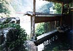 下山は鳳来寺山パークウェイの途中から左に折れて湯谷温泉へ。温泉と食事を一度に楽しもうと選んだのが「食事処 ゆかわ」。この温泉地でもっとも古くから日帰り入浴を始めたお店。 露天風呂のすぐ際は宇連川の清流。川床が硬い岩板のため別名が板敷川。浅瀬なので白いしぶきがあちこちに弾け、山の緑とあざやかなコントラストを見せてくれます。 お待ちかねの料理も川にせり出したテラス風の一等席で、名物のあゆのセット料理をいただきました。から揚げ、塩焼き、田楽、刺身とあゆ尽くし。焼きたてを豪快にかじり、湯上りの咽喉にビールを流し込む。これも運転無用のジャンボタクシーならではの醍醐味。紅葉真っ盛りのシーズンにぜひもう一度という気になるひとときでした。 |