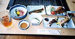 | 露天風呂につかり、川魚料理に舌鼓