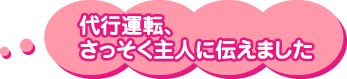 初めて「名タクEye」を読みました。代行運転サービスは飲む側にとってもいいサービスですね。さっそく主人に伝えました。 |