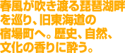 王国から湖岸のさざなみ街道を南へ。湖を渡る春風を受けての快適なドライブです。前方の半島に立つスマートな風車が間近に迫ると、そこが草津市の水生植物公園みずの森。周辺は大スケールの蓮の群生はじめ、水生植物の宝庫。花たちの世界をたっぷりと堪能できるのがこの公園なんですね。