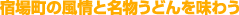 午前10時〜午後5時。月曜日と祝日の翌日定休。七福うどん定食850円。天ざる1100円。5人以上なら、彩りも鮮やかな「宿場の御膳」(要予約)も。