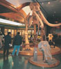 公園の向こうは琵琶湖博物館。ここでは琵琶湖の成り立ちや生物、人々の暮らしをさまざまな趣向で紹介しています。170万年前の化石林、300年前の黄河象(中国)の巨大な全身骨格、それに昭和30年代の農村の暮らしぶりは、実物大の家屋を再現。面白いのは夕食風景で、琵琶湖産のギギの煮付け、ナマズや鯉の味噌汁など本物そっくり。館内の水族館では1メートルの大ナマズがゆらりと泳ぎ、子供たちが大騒ぎしていました。