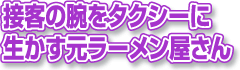 「名タクは社員教育がしっかりしており、職場の雰囲気も和気あいあいで、居心地がいい」と、転職の成功を実感する吉野さん。ハンドルを握って2ヵ月あまりですが、店経営で学んだ接客のノウハウは、今の仕事にも生かされており、「いろいろなお客さまにお会いできるのが一番の魅力です」。