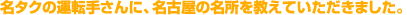 小説「子盗り」で、2002年、第19回サントリーミステリー大賞の大賞と読者賞をダブル受賞された作家の海月ルイさん。子育てがひと段落したのを機に小説の作り方を学び、一気に頭角を現したというユニークな経歴も、注目を集めている。京都育ちだが、現在は阿久比町にお住まい。名タクもよくご利用いただいているそうで、お褒めの言葉をいただいた。 村瀬 京都からこちらにいらっしゃって、20年近くですか。言葉はまだ京都ですか。 海月 そうなんですよ。娘は保育園に上がるまでは、京都弁をしゃべっていたんですが、今はもう完全に阿久比弁。(笑) 村瀬 名古屋弁と随分、違うんですか。 海月 違うんですよ。名古屋は「どえりゃあ」とおっしゃるでしょ。阿久比では「でら」(笑)。私は実家が京都なので、葵祭の行列に娘を出したんですよ。他の子どもさんは全員、京都弁なんですね。休憩のとき、皆さんは「しんどいわ」と言わはるんですよ。うちの子は「でら疲れたげ」(笑)。お姫様の格好で。ウケましたよ。 村瀬 ほお。 海月 実家の親や兄弟は、「でら」というのは、デラックスの「デラ」や思うんですよ。で、阿久比弁はお茶目でかわいいって。 村瀬 向こうでは、斬新な言葉なんですね。でも京都の人は、プライドが高いですからね。文化を守ろうとするでしょ。空襲に遭ってないから、街並みも昔のままだし。 海月 牛車が通ってた道が、そのまま残ってますからね。車では身動きが取れない。歩きと自転車が一番確実なんですよ。だから名古屋に来たとき、ビックリしましたね。どこにでも車でいくのが当たり前という生活だから。 村瀬 だけど京都も、最近はずいぶん変わってきましたでしょ。 海月 変わりましたねー。ちょっと前までは私も京都に帰ると、懐かしく思いましたけど、最近は他の町に行ったような。街並みは全国、ほとんど地域差がなくなりましたね。阿久比町のショッピングビルと、東京のお台場にあるショップと、売っているものは同じですよ。 村瀬 言葉だけでしょうね、今違うのは。 海月 テレビや雑誌、ネットで、同じ情報を享受してますからね。昔は作家になるためには、東京に行かないとダメだったんですね。本が買えないから。今、そんなことはないですよ。私、資料調べは全部、阿久比町の図書館でやりましたよ。(笑) 村瀬 そこで思うんですけど、本を買って置いとくと、場所を取るんですね。かといって捨てるのも抵抗がある。一番いいのは、図書館の本なんですよ。だけど1冊の本を何百人、何千人が読むわけでしょ。タダで。そうすると作家にとっては、本は売れない。著作権料ももちろん入らない。これはおかしいと思うんですよ。 海月 おっしゃる通りですよ。だから推理作家協会から申し入れしているんです。せめて新刊を置くのは一年待ってくださいとか。知的所有権が認められないということは、作家が生き残れなくなるわけですね。生活できないから。そうすると日本の商業ビジネスに、小説が流通しなくなる。これは文化の崩壊を意味しているんですよ。 村瀬 一冊書き上げるまでに、いろいろ取材したり調べたりするわけでしょ。そこにかける時間とお金がなくなっちゃうんですよね。 海月 そうなんですよ。取材の交通費もタダじゃないですから。本当に根気のいる仕事なんですよ。ところが金銭的にはほとんど報われないんです。 村瀬 図書館は、定価1000円の本だったら、10万円で買うとかね(笑)。 海月 それはいいですね(笑)。ただ、図書館には思い入れもあるんですね。小さいころお世話になり、その延長線上に、今の自分がいるので。そういう作家の方は多いと思います。 村瀬 こちらでも、タクシーはよくご利用なさるんですか。 海月 はい。仕事で名古屋に来るときは、いつも名タクさんを使わせていただいています。運転手さんは親切な方ばかりで。 村瀬 それはありがとうございます。 海月 名古屋のことをまだ何も知らなかったころ、京都の友だちと名タクさんに乗ったんですけどね。友だちに「どこ(の観光地に)行くねん」って聞かれて、「名古屋は何もないねん」って、偉そうに言ったんですよ。そしたら運転手さんがものすごく優しくて丁寧でね。「名古屋にもいいところがいっぱいあるんですよ」って。 村瀬 ほお。 海月 金山にボストン美術館ができたとか、動物園には植物園もあって、1日では回りきれないくらいですよとかね。よく勉強してはって、感心しました。ああいう運転手さんに観光案内してもらったら、名古屋のイメージは変わるでしょうね。 村瀬 それはうれしいですね。 海月 私は地方に取材とか行くとね、運転手さんの話を結構、聞くんですよ。観光案内の本に書いてあることから、お客さんがしゃべらはることまで、知ってはるでしょ。レアな情報が入ってくるんですよ。村瀬 なるほど。 海月 例えばね、おいしいラーメン屋さん。京都でも夜9時か10時になると、空車のタクシーがダーッと並ぶラーメン屋さんがあ