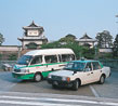加賀友禅 | 金沢箔 | 金沢城「石川門」をバックにした同社タクシー |