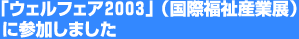 5月23日(金)、24日(土)、25日(日)の3日間、港区のポートメッセなごや(名古屋市国際展示場)で、「ウェルフェア2003」が開催され、当社からも出展しました。