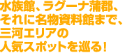 竹島水族館から今度はラグーナ蒲郡へ。国道23号線を東に、帆走するヨットを眺めながらのシーサイドドライブを15分ほど。大きく湾曲した海岸に一際目立つ大観覧車が目印です。