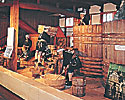 さて館内。熱帯魚やら深海魚やら、三河湾の魚やら、約450種もの魚たちの水槽が並びます。アニメ映画で人気のクマノミや、3メートルものタカアシガニも人気ですが、もう一つの目玉が、あのエリカ号のキャビン展示。