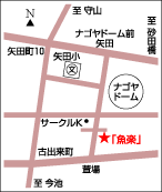 ナゴヤドームの正面玄関から南へ歩いて4分ほど。旬彩食工房「魚楽」は、蔵づくり風の外観が目印の和食の店です。