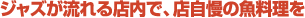 長年、板前の修業をしてきたご主人と女将さんの念願かなって、店を構えたのが4年前。白壁の外観、ジャズの流れる店内、そして作家物の陶芸作品がさり気なくおかれ、器のひとつひとつにもこだわるなど、お2人の夢を凝縮した店になっています。