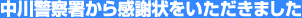 当社は平成15年度を通して、積極的に警察業務に協力したとの理由から、平成16年1月9日、中川警察署から感謝状をいただきました。