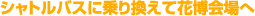会場へは、ひっきりなしに発車している無料シャトルバスで。わずか数分の快適アクセスです。