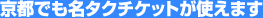 これにより京都市内ではひし形のマークが見られないことになりましたが、名タクのチケットはこれまで通り提携会社として彌栄自動車でご使用いただけます。これからも京都のお出かけの折は、「ヤサカ」マークのタクシーをご利用ください。 |