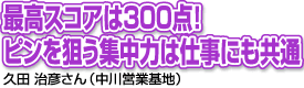 学校を卒業後は迷わずボーリング場に就職。33歳でインストラクターの資格を取り、その後プロテストにも合格します。これまでの最高スコアはパーフェクトストライクの300点。プロなら誰でも出せるというスコアではありません。