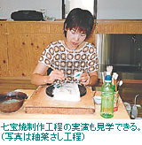 館内には絵付けや釉薬さし、研磨など製作工程の実演ゾーンもあり、興味深いけれど、人気はやはり七宝焼体験教室。何しろ世界で一つしかない花のブローチ、ネクタイピン、ペンダントが手に入るわけですから。