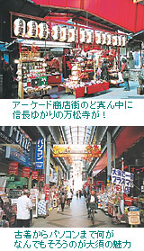 大盛況だった万博が幕を閉じても名古屋の元気は相変わらず。その「はつらつ」ぶりを肌で感じられるのが大須界隈。大須観音、万松寺の古刹群、そして古着からハイテク商品まで何でもありのアーケード商店街がからみあい、年齢不問の独特な混雑ぶりを見せています。今回は下町情緒たっぷりの大須と、江戸情緒が漂う絞りの町・有松を「なごやかガイド」の案内で巡ってきました。