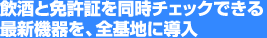 当社では、アルコール検知と免許証点検が同時にできる最新機器を、北基地に続き全基地に導入しました。これは市内のタクシー会社では初めてのことです。