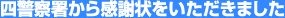 当社は「警察業務に積極的に協力を寄せ、警察業務に貢献した」との理由から、平成18年警察署感謝状贈呈式で、中川、中村、中、港の各警察署から感謝状をいただきました。