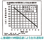 早ければ早いほど生存率はアップ 突然死の死因のほとんどは心臓疾患で、なかでも心室細動という病気が大部分を占めます。これは心臓が、けいれんした状態で、そのまま5分経つと生存退院率は50%になるといわれています。