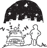 ハプニングは深夜に多い。酔いも手伝って乗ったとたん心地よさそうにぐっすり、というお客さまがいらっしゃる。なかには到着して、いくら声をかけても高いびきのままという豪快なお客さまもいる。駆け出しのころはどうしていいかわからず、目を醒ましてくれるまで辛抱強く待っていたものだ。
