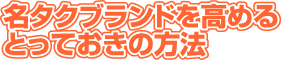 だから名タクブランドをもっと高めるために、微力ながらも協力していくこと。これが目下の目標となる。