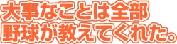 肩をこわして野球選手の道は断念したが、野球漬けだった学生時代に得たものは多い。