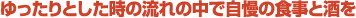 ふるさとに帰ったようなくつろぎの中で、美味しいご飯とおかずやお酒を召し上がりながら、ゆったりとした時間を楽しんでいただきたい…。そんな気持ちを京ことばの店名で表現した「ほっこり」ルーセント店。